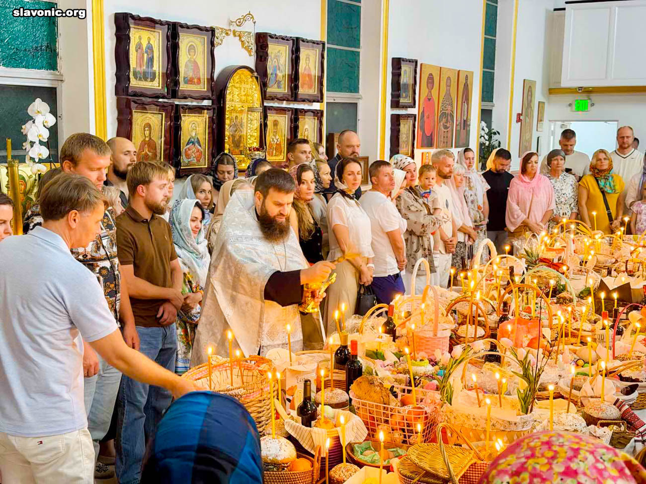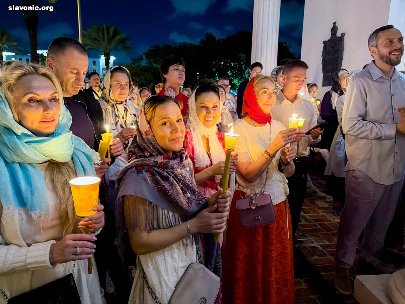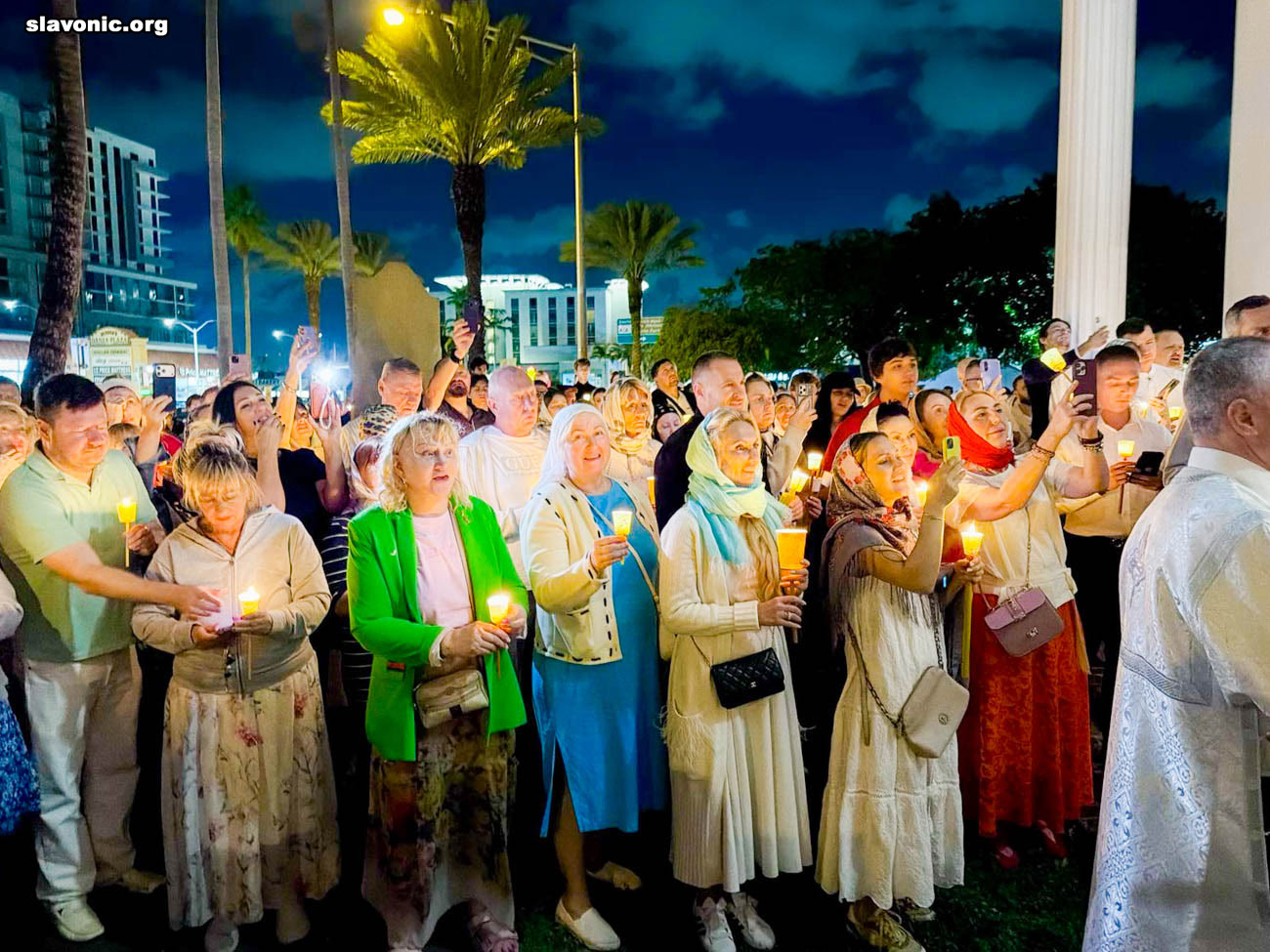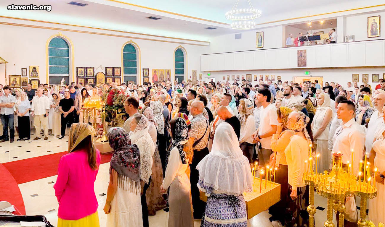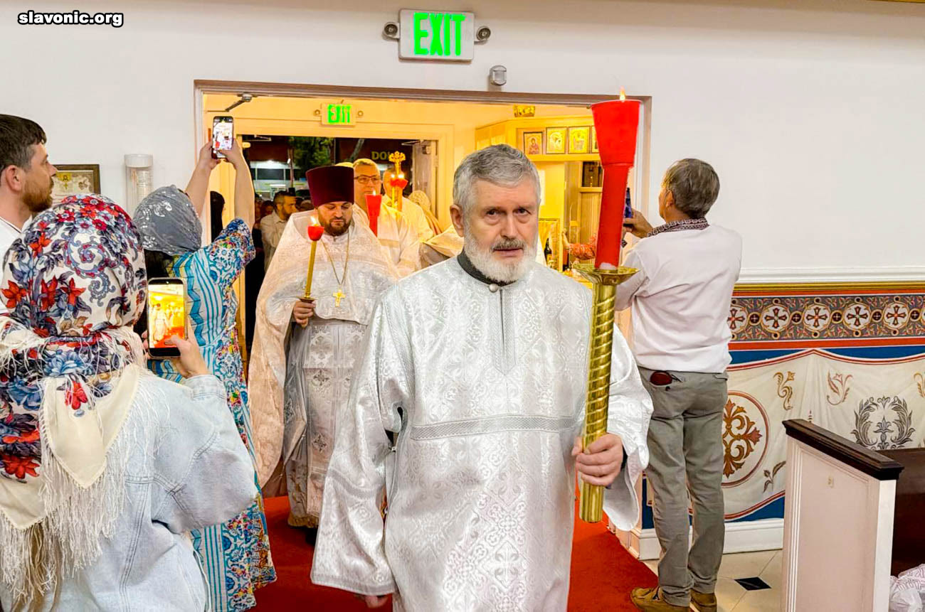 На пасхальное богослужение в собор святой Матроны в Майами собралось множество верующих многонациональной Флориды. Атмосфера была по-настоящему семейной и светлой — люди обнимались, поздравляли друг друга традиционным приветствием: «Христос Воскресе!» — «Воистину Воскресе!».