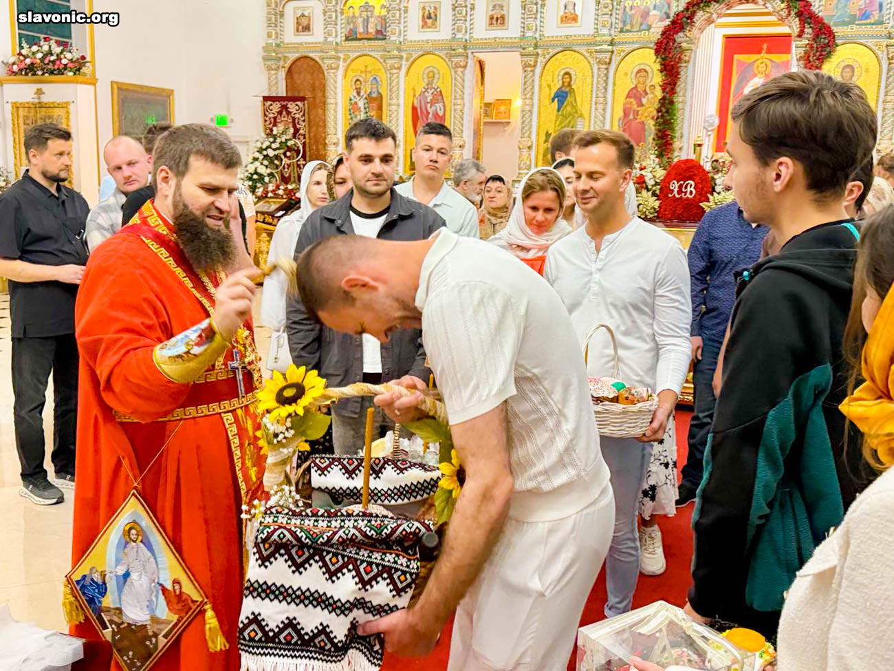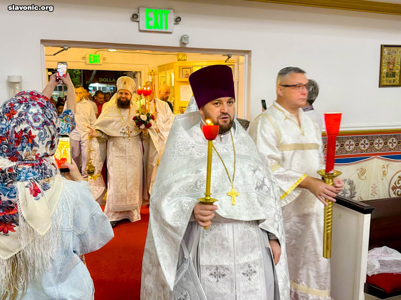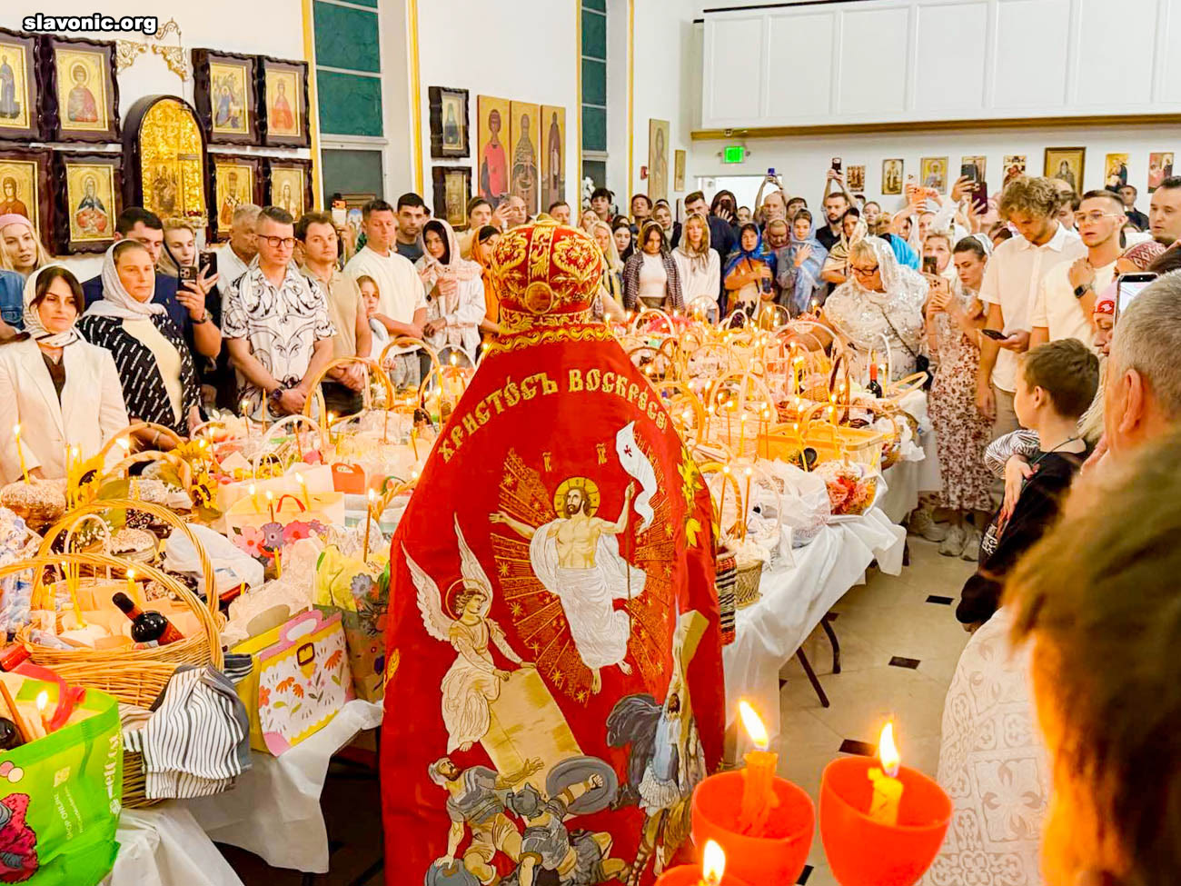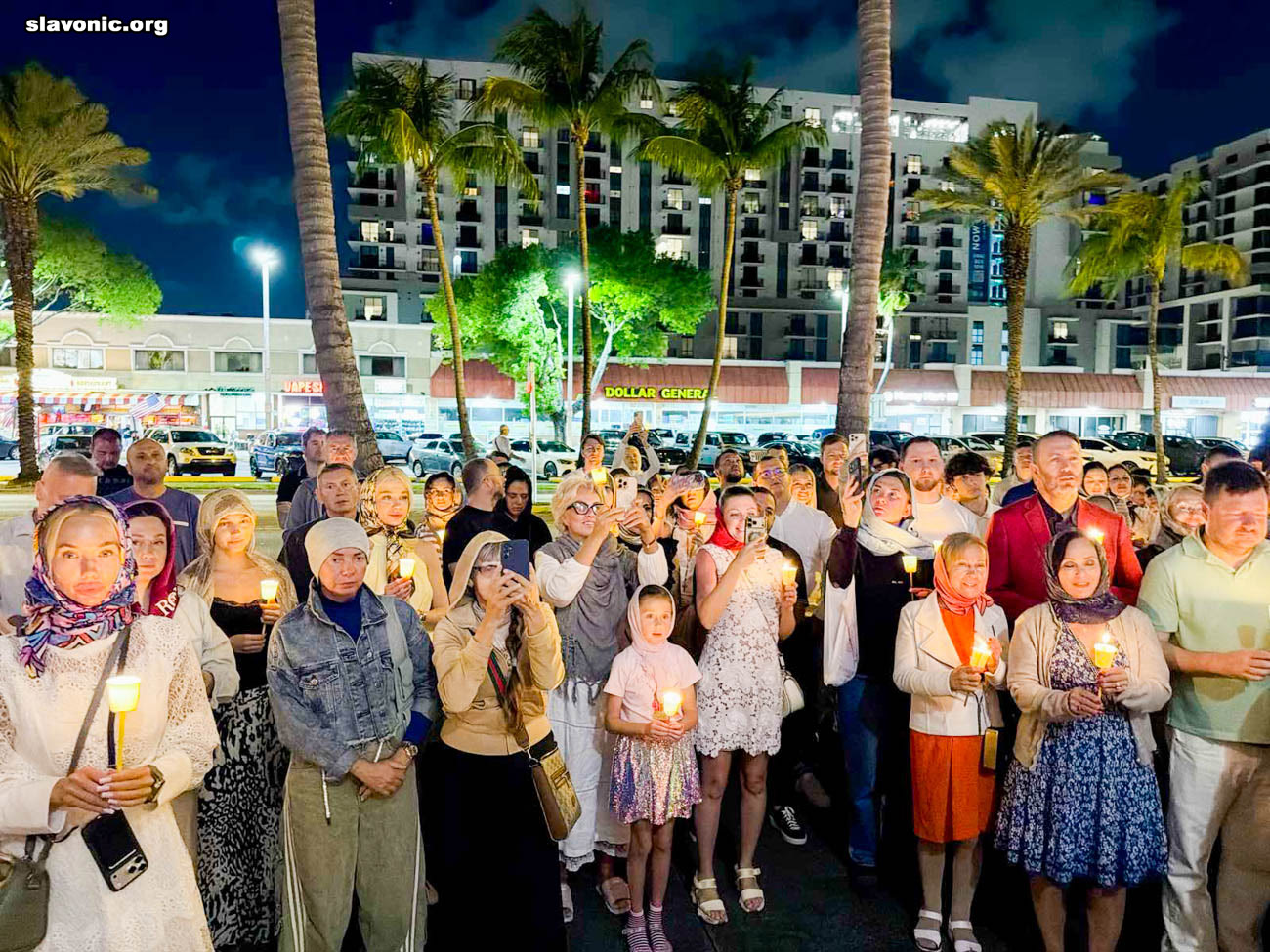 На пасхальное богослужение в собор святой Матроны в Майами собралось множество верующих многонациональной Флориды. Атмосфера была по-настоящему семейной и светлой — люди обнимались, поздравляли друг друга традиционным приветствием: «Христос Воскресе!» — «Воистину Воскресе!».