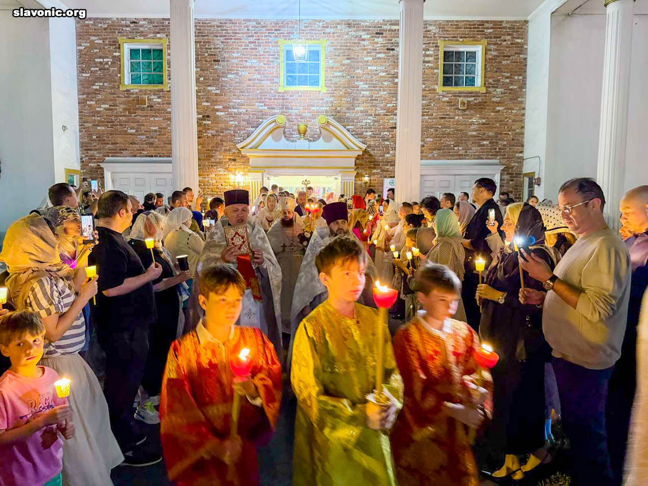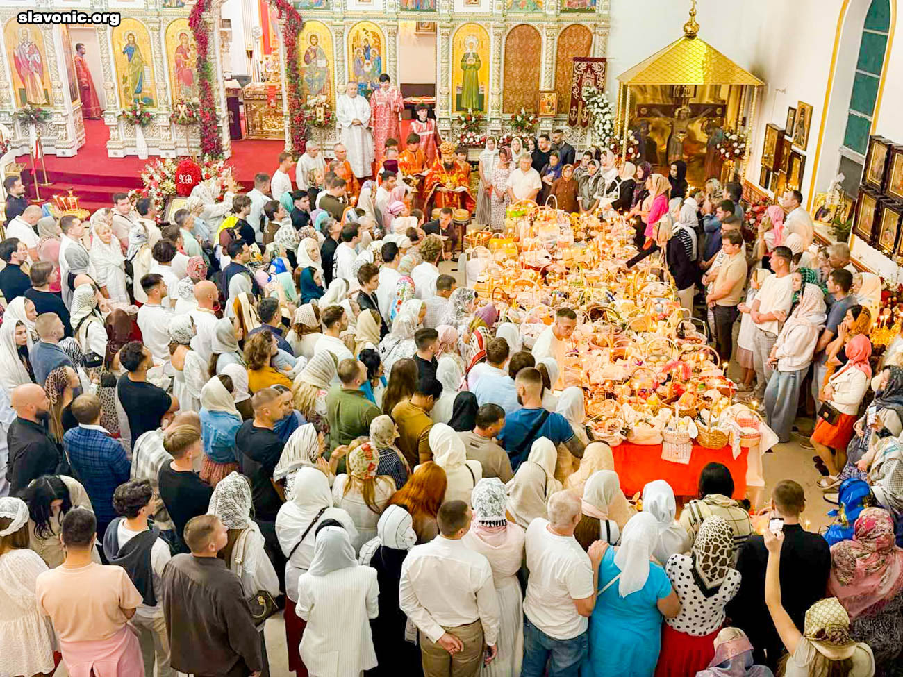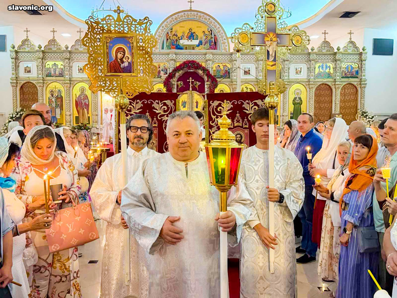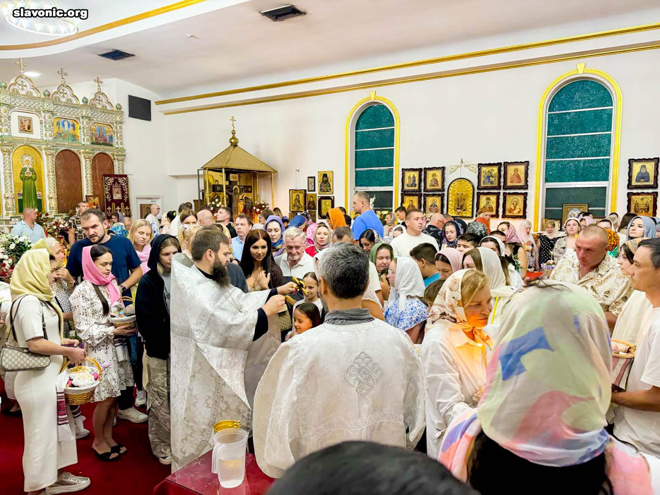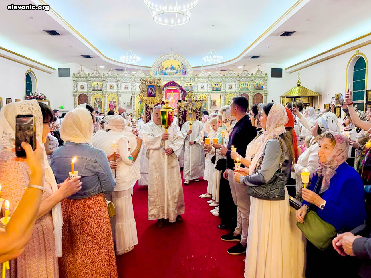 На пасхальное богослужение в собор святой Матроны в Майами собралось множество верующих многонациональной Флориды. Атмосфера была по-настоящему семейной и светлой — люди обнимались, поздравляли друг друга традиционным приветствием: «Христос Воскресе!» — «Воистину Воскресе!».