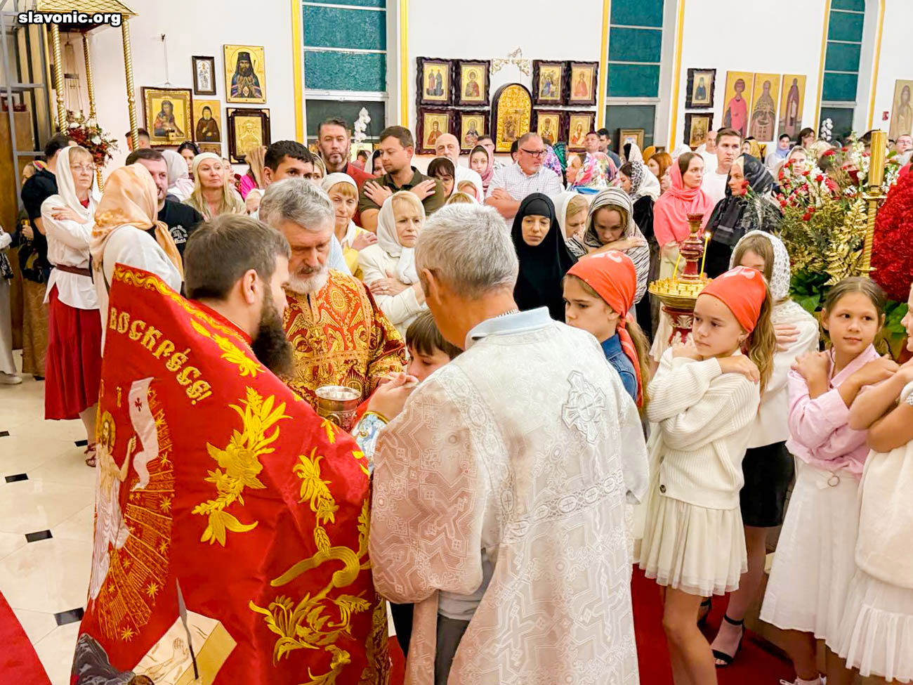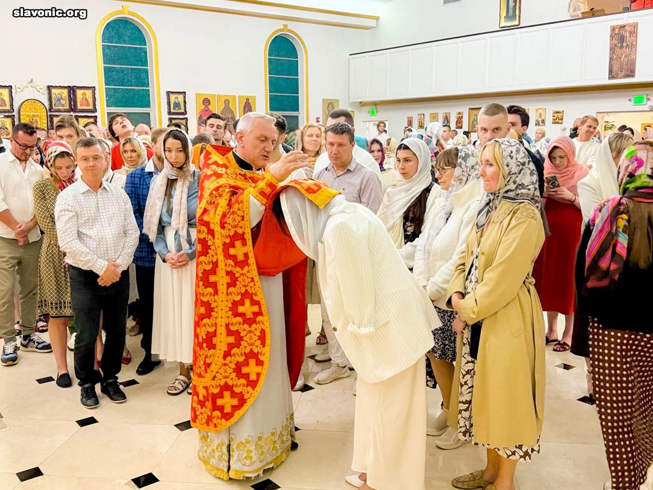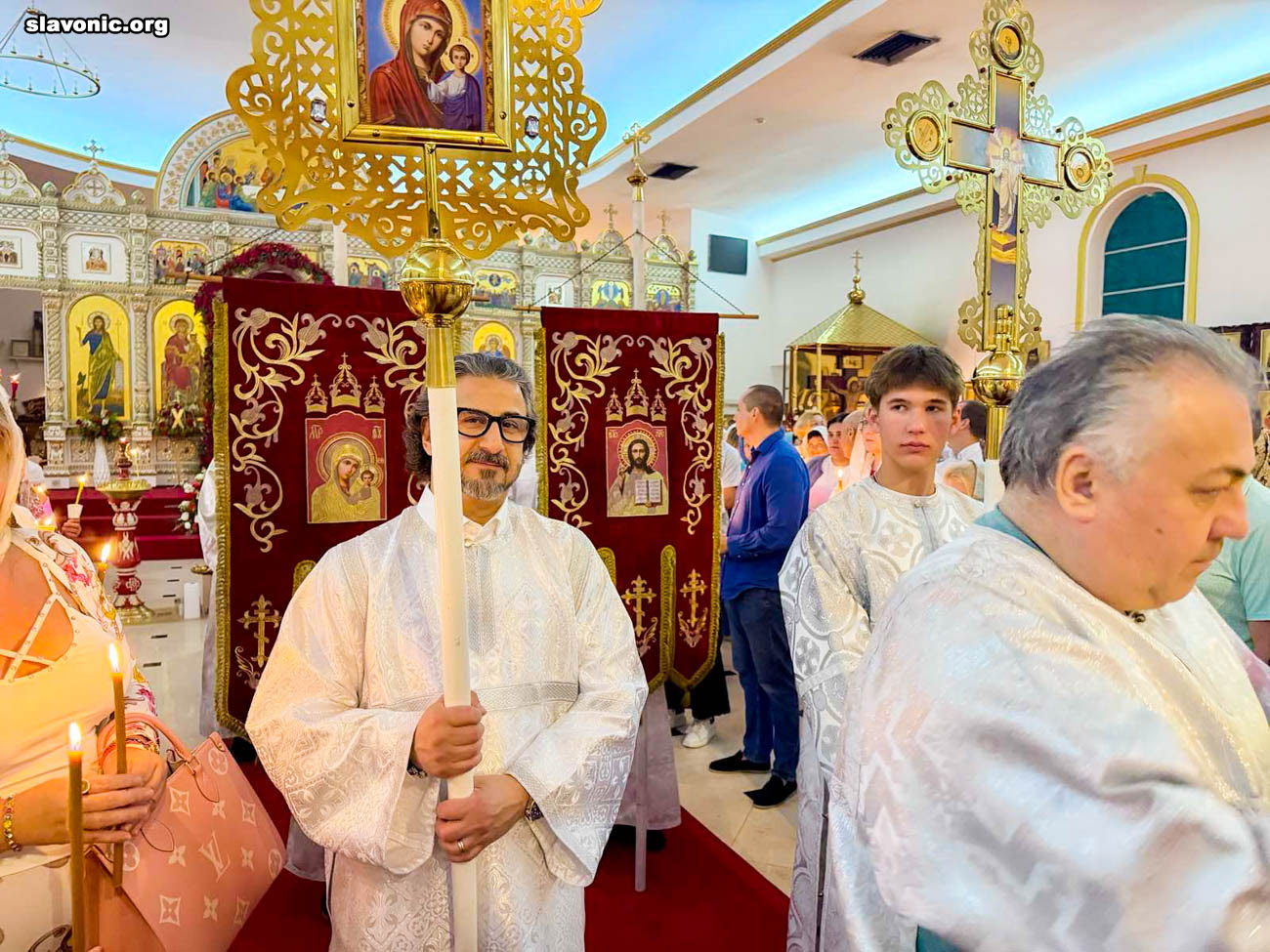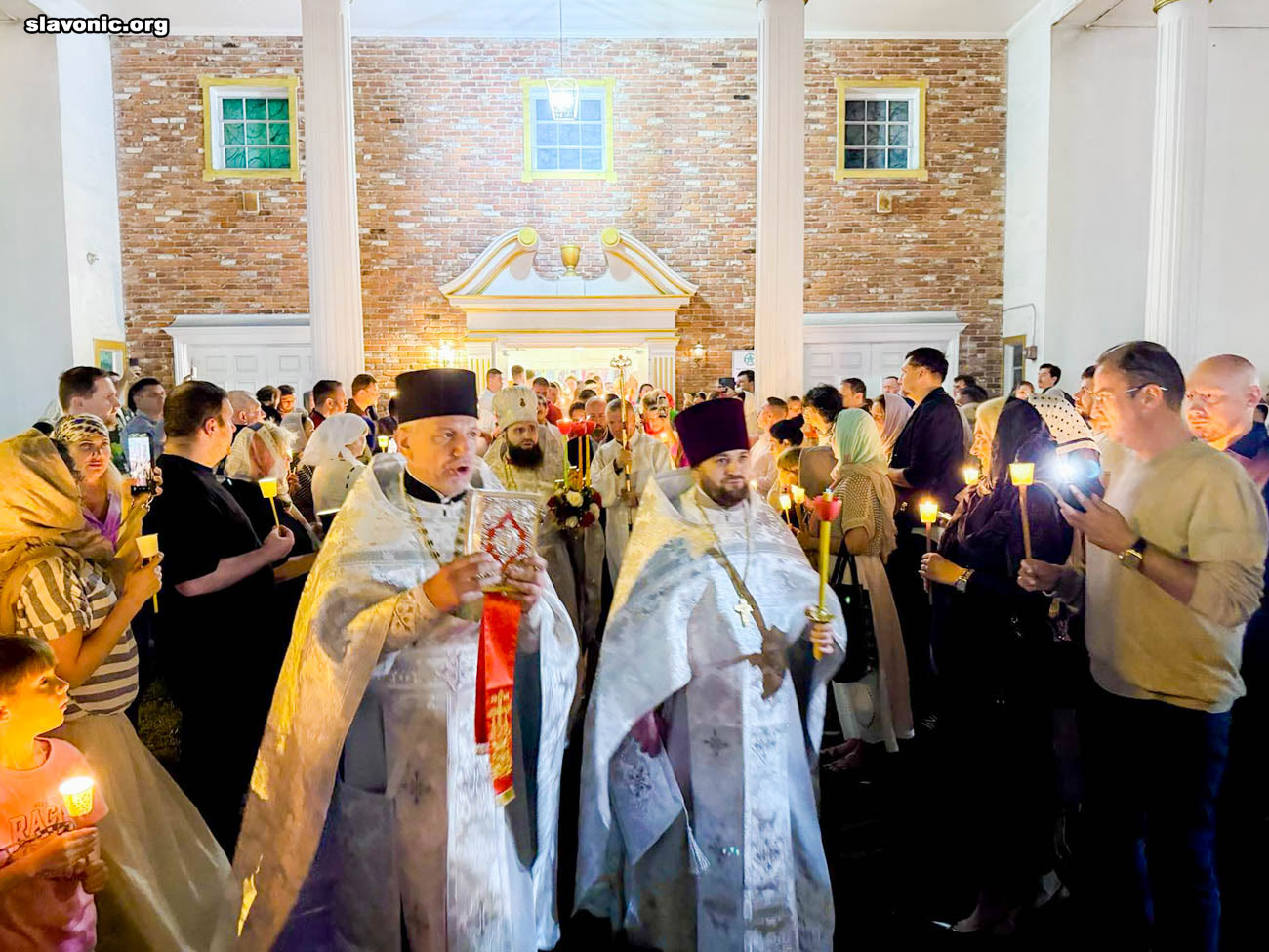 На пасхальное богослужение в собор святой Матроны в Майами собралось множество верующих многонациональной Флориды. Атмосфера была по-настоящему семейной и светлой — люди обнимались, поздравляли друг друга традиционным приветствием: «Христос Воскресе!» — «Воистину Воскресе!».