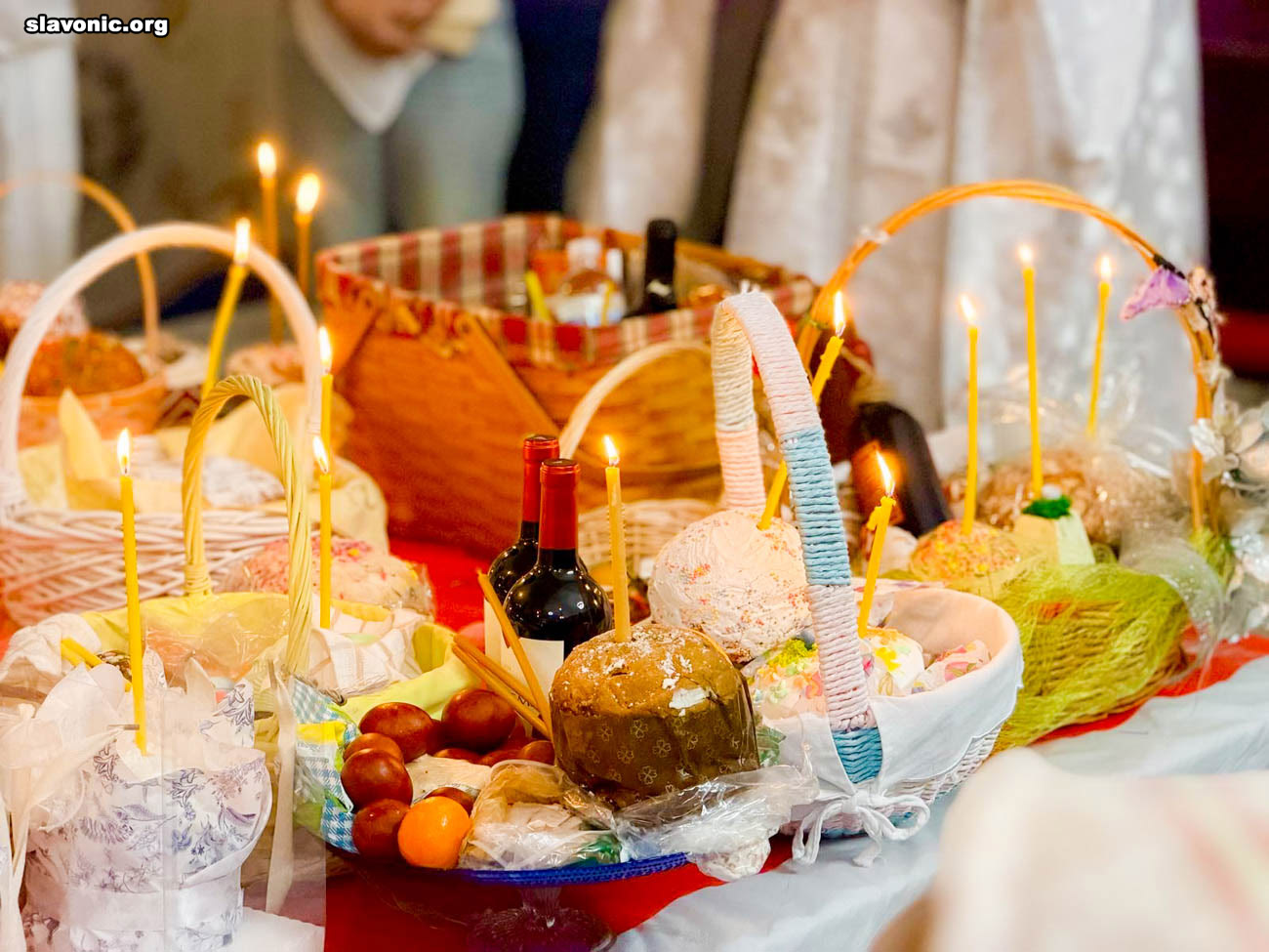 После Литургии архимандрит Александр освятил артосы и пасхальные корзины прихожан.
