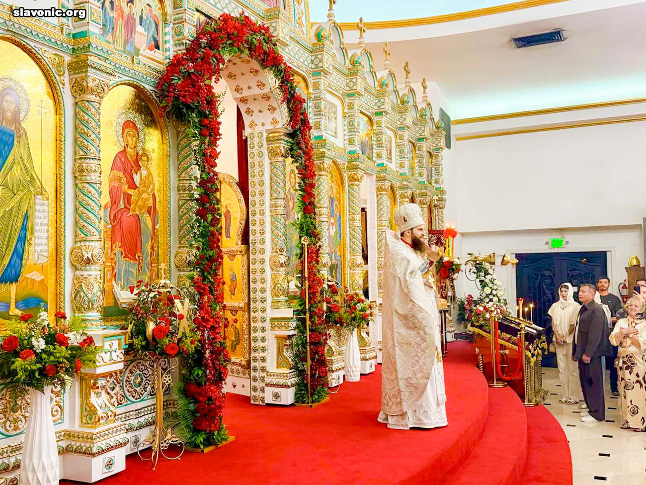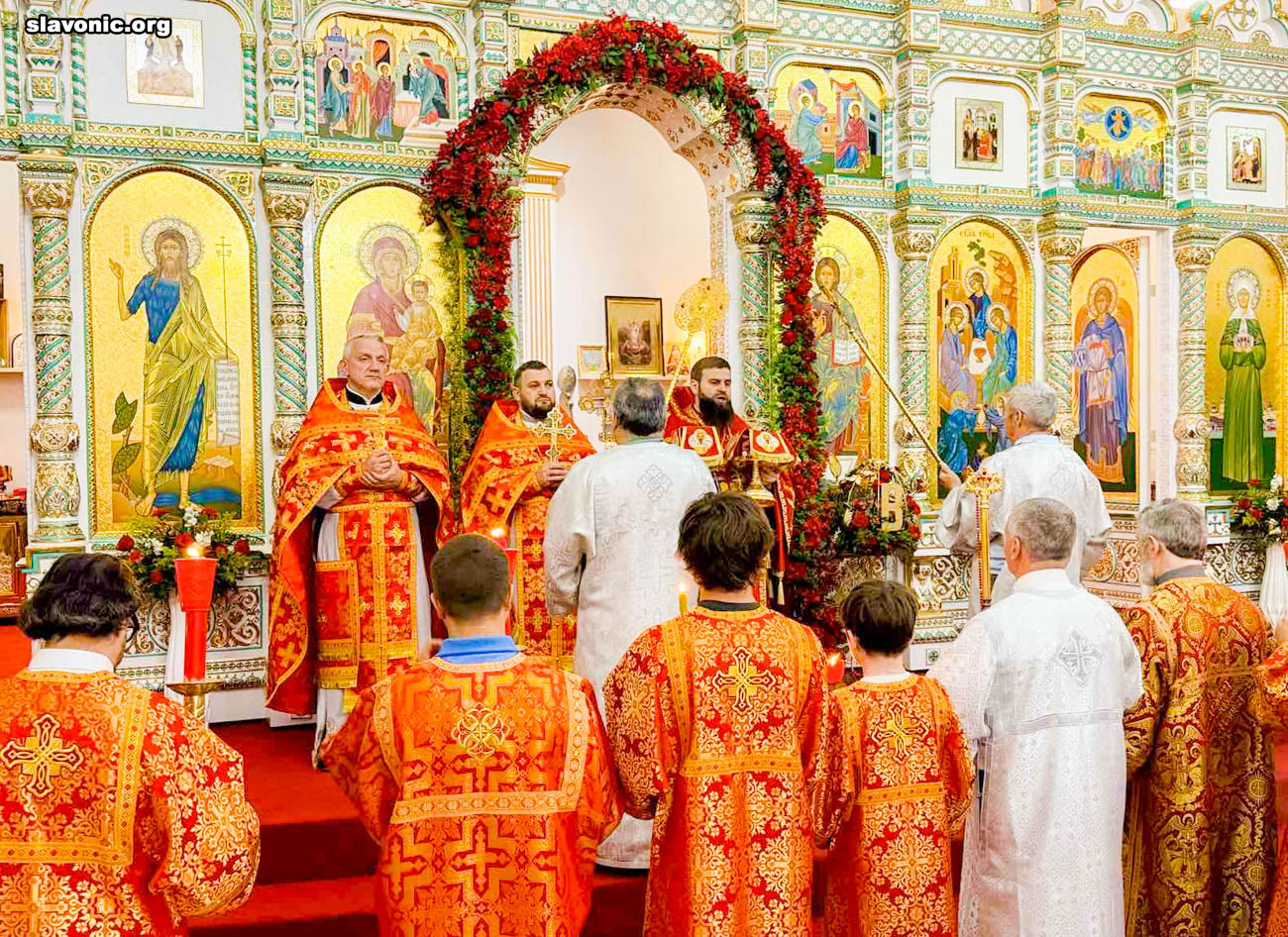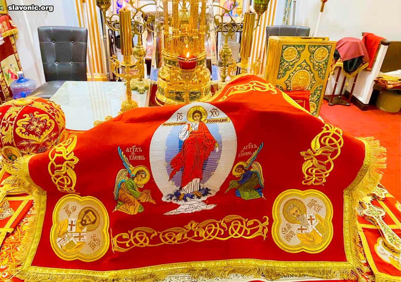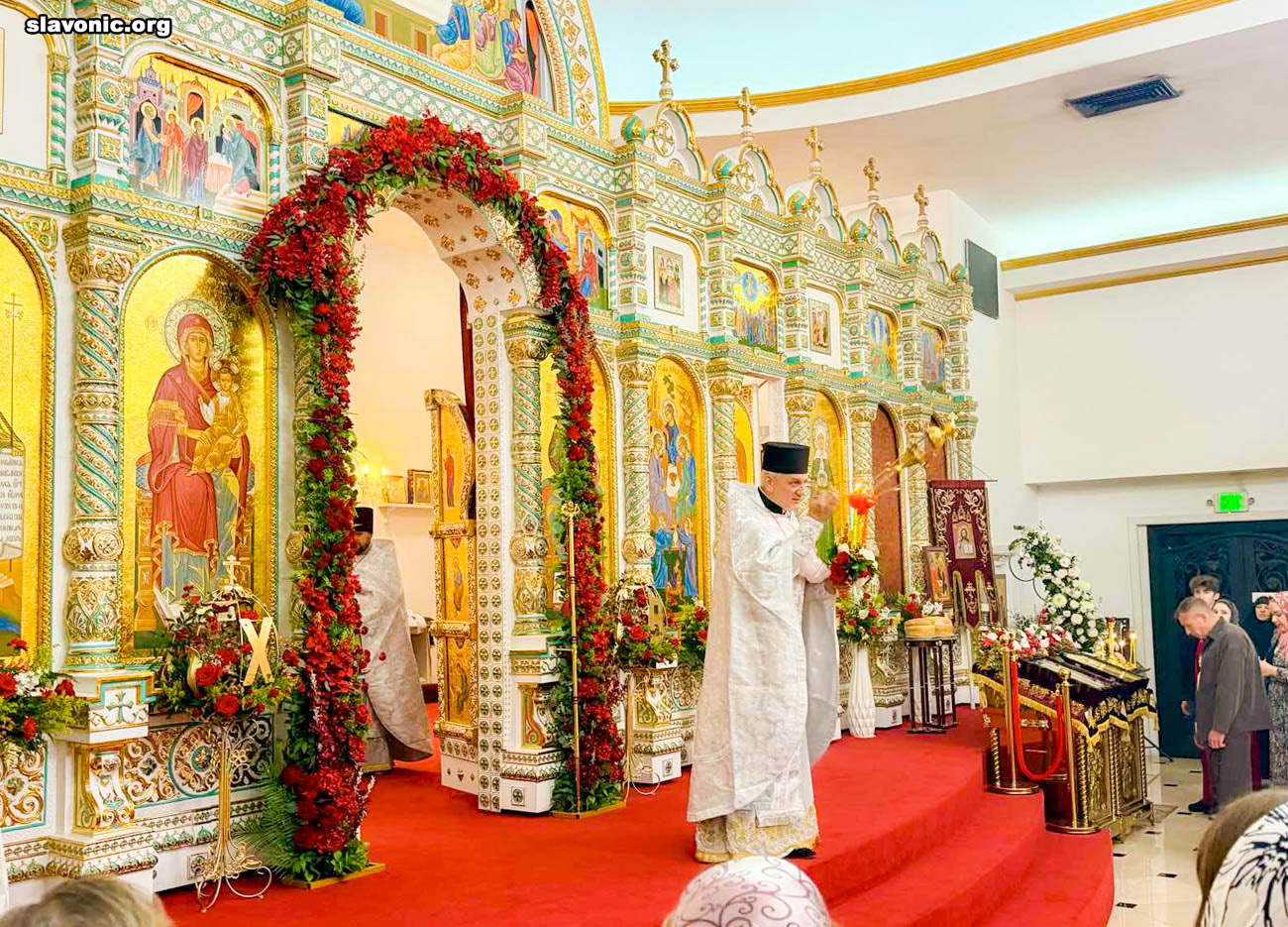 Также архимандрит Александр огласил радостную новость и обратил внимание верующих на обновленный уникальный фаянсовый иконостас Майамского собора. Перед Пасхой пришел контейнер, где была бόльшая часть икон для иконостаса. На сегодняшний день в иконостас установлено около 80% икон, которые написаны в стиле канон. Надеемся, что с Божией помощью, оставшиеся иконы будут написаны и прибудут к концу лета.