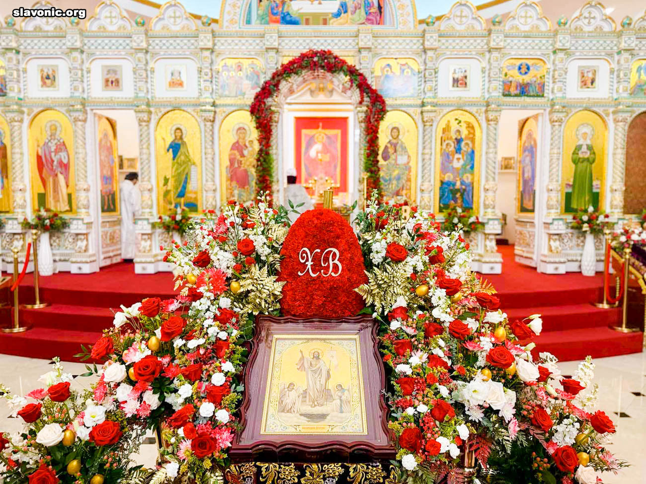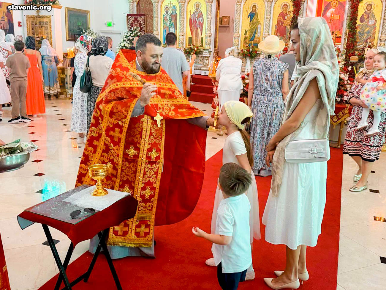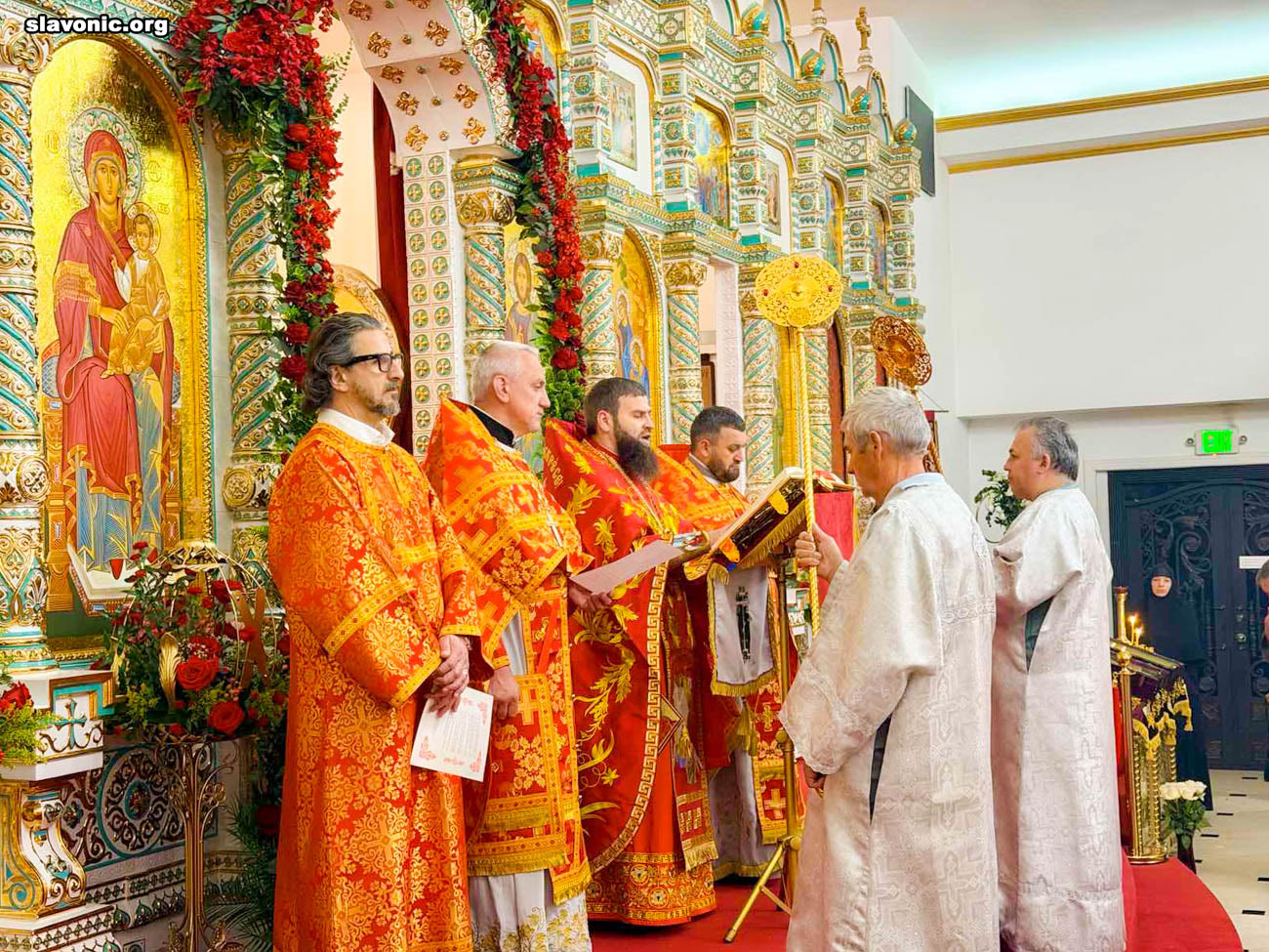 Также архимандрит Александр огласил радостную новость и обратил внимание верующих на обновленный уникальный фаянсовый иконостас Майамского собора. Перед Пасхой пришел контейнер, где была бόльшая часть икон для иконостаса. На сегодняшний день в иконостас установлено около 80% икон, которые написаны в стиле канон. Надеемся, что с Божией помощью, оставшиеся иконы будут написаны и прибудут к концу лета.