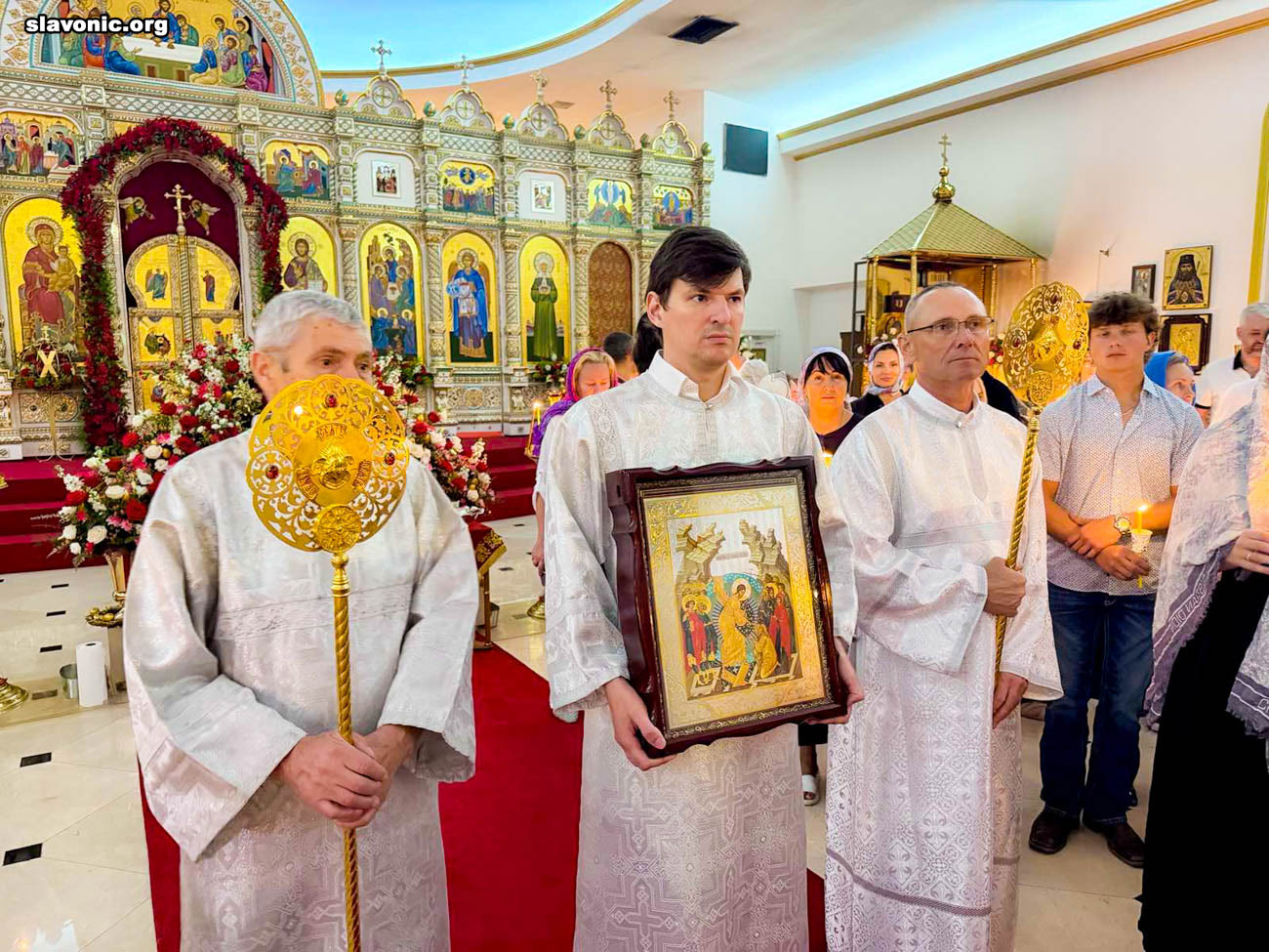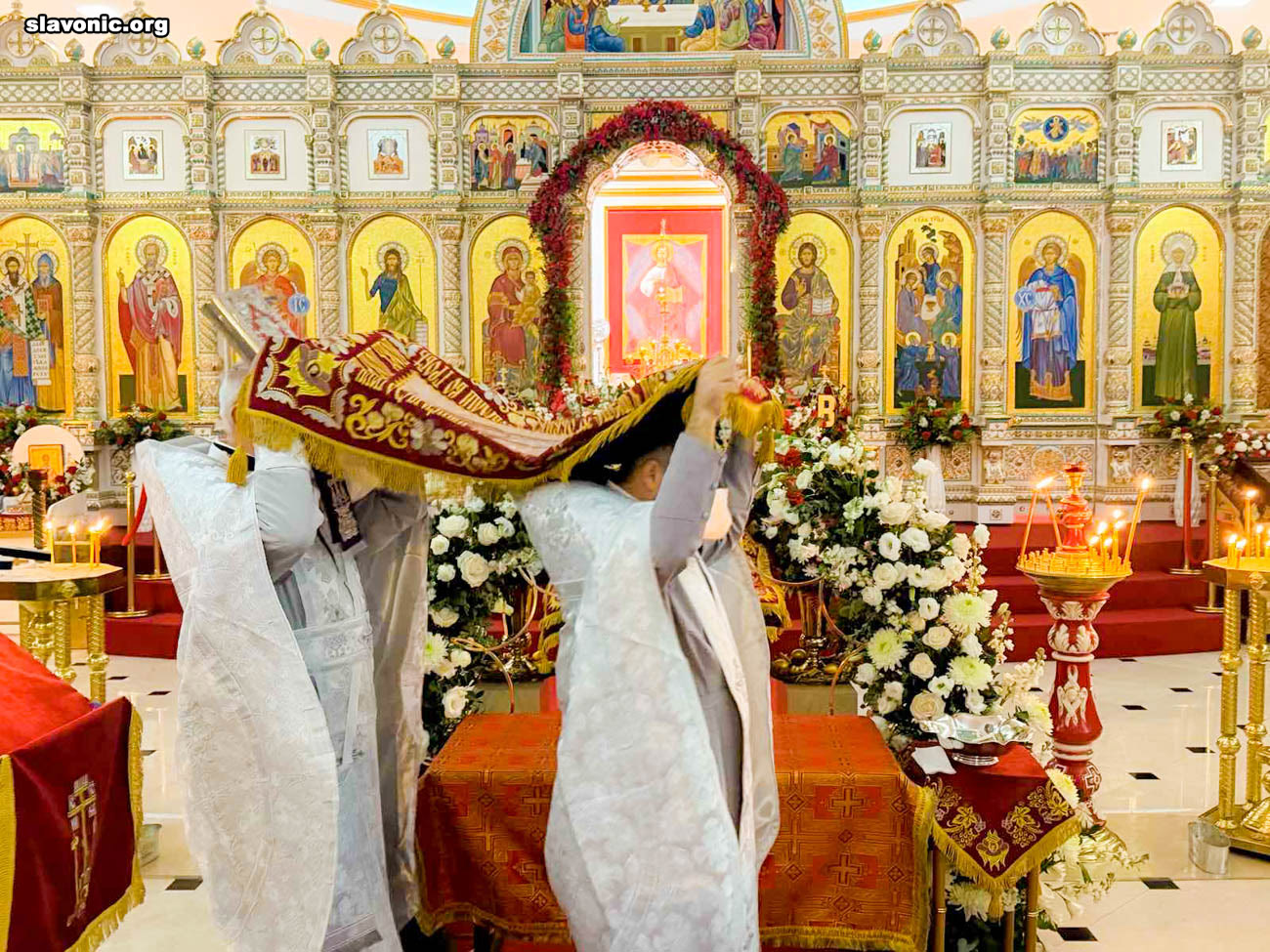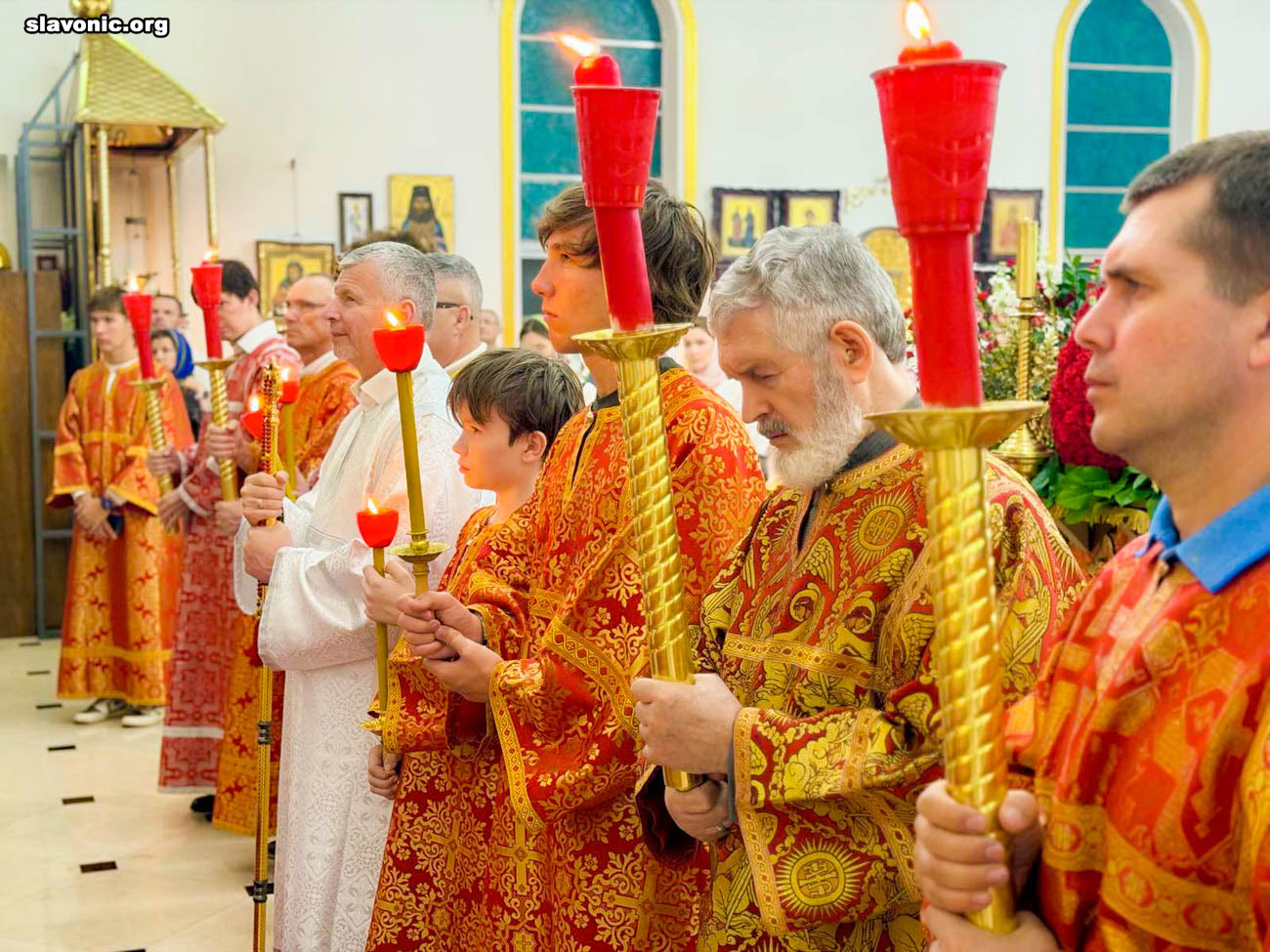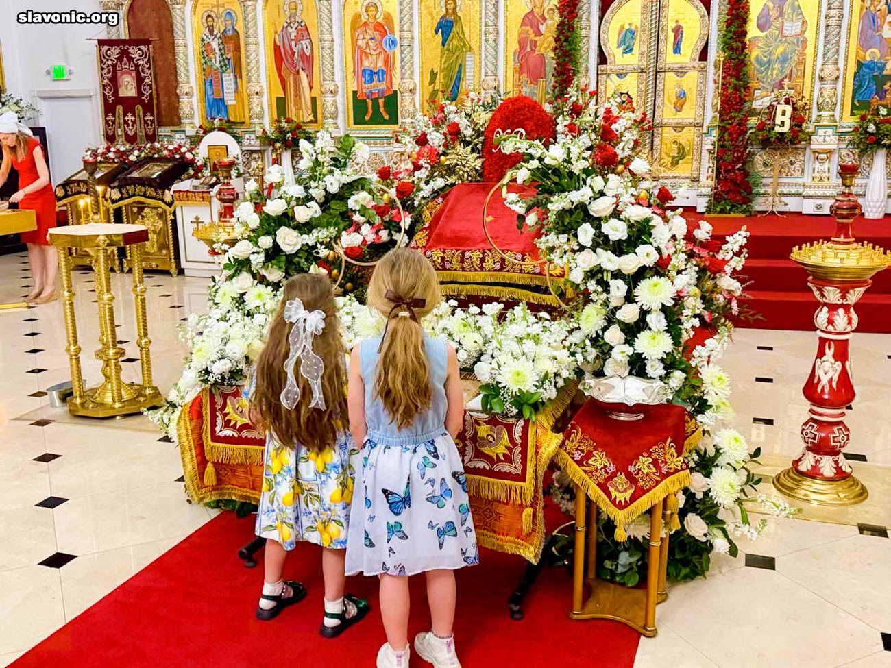 Также архимандрит Александр огласил радостную новость и обратил внимание верующих на обновленный уникальный фаянсовый иконостас Майамского собора. Перед Пасхой пришел контейнер, где была бόльшая часть икон для иконостаса. На сегодняшний день в иконостас установлено около 80% икон, которые написаны в стиле канон. Надеемся, что с Божией помощью, оставшиеся иконы будут написаны и прибудут к концу лета.