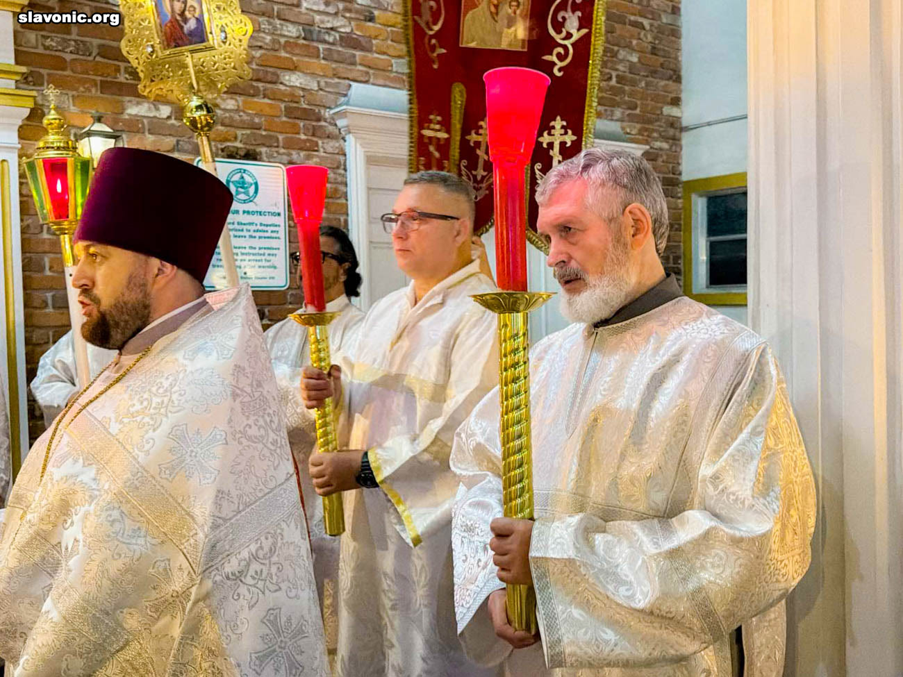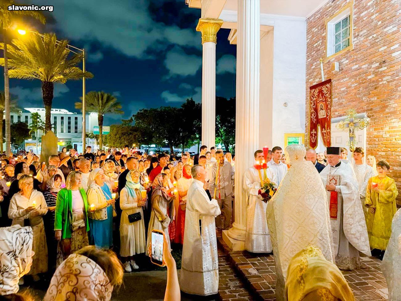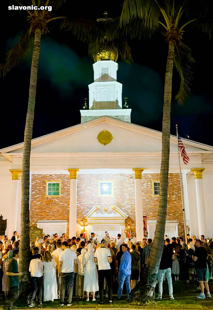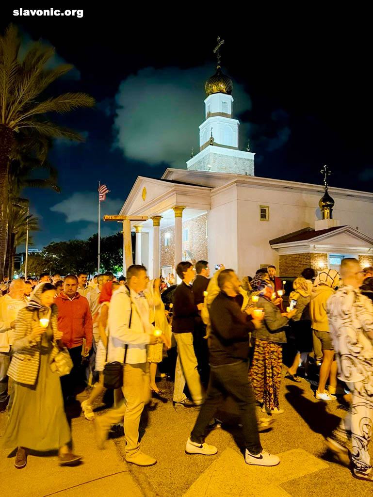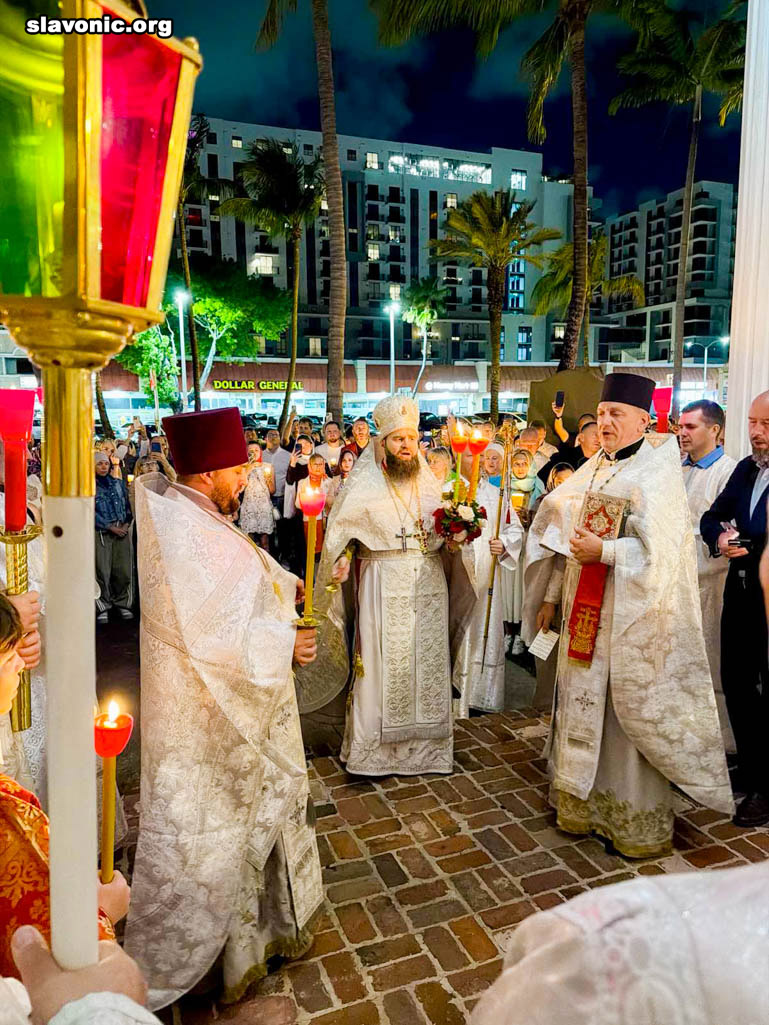 Незадолго до полуночи начался Крестный ход вокруг собора святой Матроны в Майами, после чего последовали Пасхальная заутреня и Божественная литургия, которые возглавил настоятель Майамского собора викарий Славянского Викариатства архимандрит Александр (Беля), избранный епископ Никопольский, в сослужении клириков — протоиереев Иоанна Зейкана и Максима Плискова.