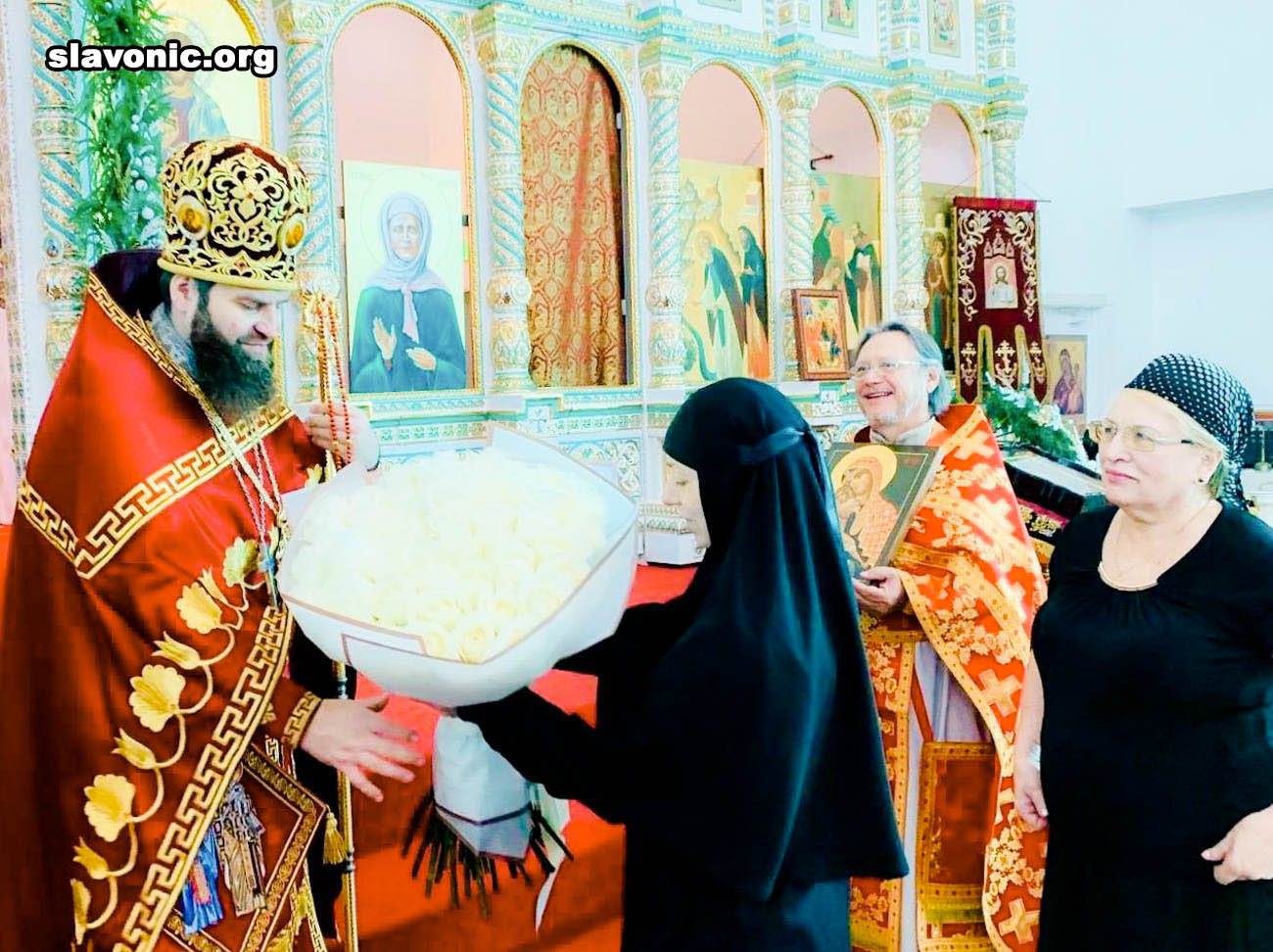 On this day, Archimandrite Alexander prayerfully celebrated the day of his heavenly patron. After the glorification at the end of the Liturgy, the rector was congratulated on his name day by his fellow clergy, the parish warden Ivan, the sisterhood, and the parishioners. From the Monastery of St. Nicholas in Fort Myers, Sister Zlata presented Father Alexander with a hand-painted icon of the Kykkos Icon of the Mother of God, one of the main shrines of the Orthodox Church of Cyprus