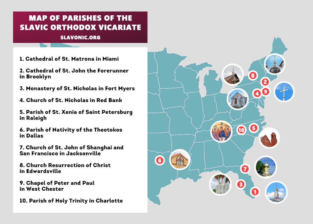Map of parishes of the Slavic Orthodox Vicariate of America